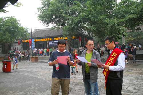 博物館工作人員告訴記者:為了更好的達(dá)到宣傳目的、服務(wù)群眾、讓群眾參與到活動日的氛圍中來,當(dāng)天劉氏莊園博物館購?fù)ㄆ睂嵭虚T票五折優(yōu)惠;組織志愿者們進社區(qū)、學(xué)校、古街,用發(fā)放宣傳單的方式進行宣傳和互動,讓游客可以更直觀的更深入的了解博物館。