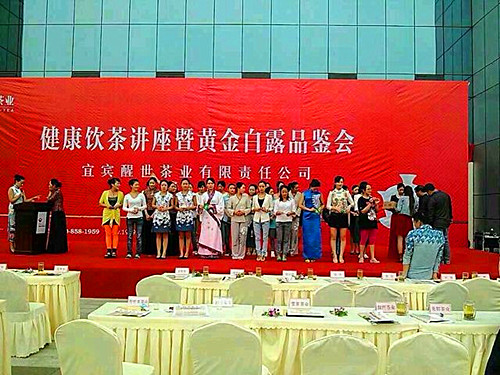 茶友們一邊聆聽(tīng)著講座,一邊品味著黃金白露!包S金白露”是1959年筠連茶人精心創(chuàng)制的一款紅茶,作為國(guó)慶十周年的禮品敬獻(xiàn)毛主席,并收到了中央辦公廳回復(fù)的感謝信。此款茶因釆于白露、色若黃金而故名。2000年醒世茶業(yè)并購(gòu)筠連茶廠后,從史料中鉤沉出來(lái),找到當(dāng)時(shí)參與制作的老茶人,經(jīng)反復(fù)試驗(yàn),使之重獲生機(jī)!靶咽馈S金白露”一面世,就得到了業(yè)界專(zhuān)家的好評(píng),從2009年10月以來(lái),在歷屆中國(guó)國(guó)際茶業(yè)博覽會(huì)上連續(xù)獲得五個(gè)金獎(jiǎng),一直保持著川紅工夫頂級(jí)珍品的連續(xù)性和巔峰性,產(chǎn)品銷(xiāo)往全國(guó)各地,深受廣大消費(fèi)者喜愛(ài)。