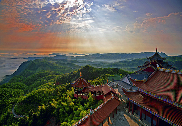 蜀南竹海龍吟寺 霞光普照萬頃竹海