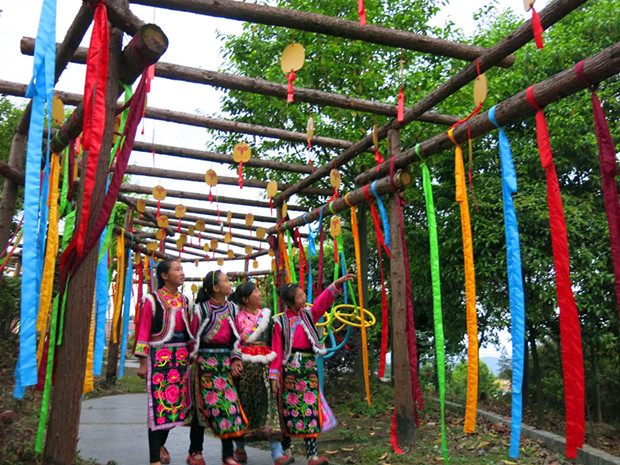 羌族姑娘們?cè)谑子扯Y上跳起羌族舞