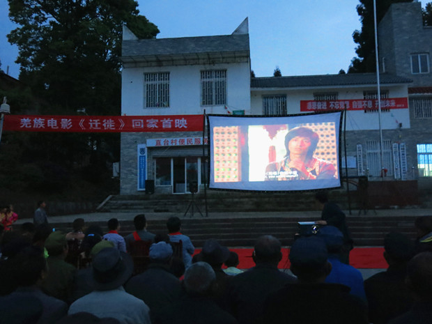 央廣網(wǎng)邛崍5月11日消息(記者隆敏 馬鮮 通訊員蔡駿)5月10日晚,邛崍市油榨鄉(xiāng)直臺(tái)村人頭攢動(dòng),大型史詩(shī)電影《遷徙》在這里首映。在汶川大地震六周年之際,這部表現(xiàn)汶川受災(zāi)羌族民眾異地重建家園的民族故事片《遷徙》“回家”首映在邛崍市南寶山移民安置點(diǎn)舉行。