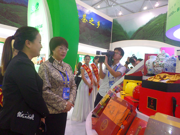 宜賓市委副書記呂曉莉(左二)在醒世茶業(yè)展廳