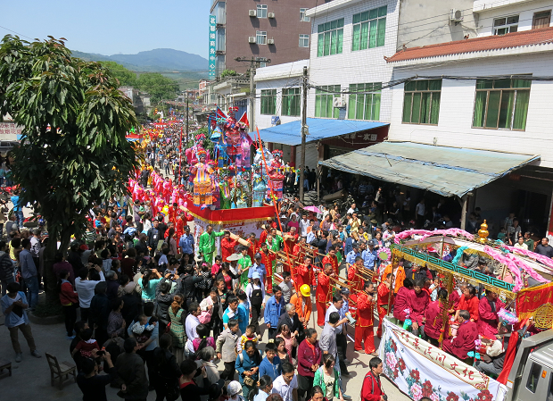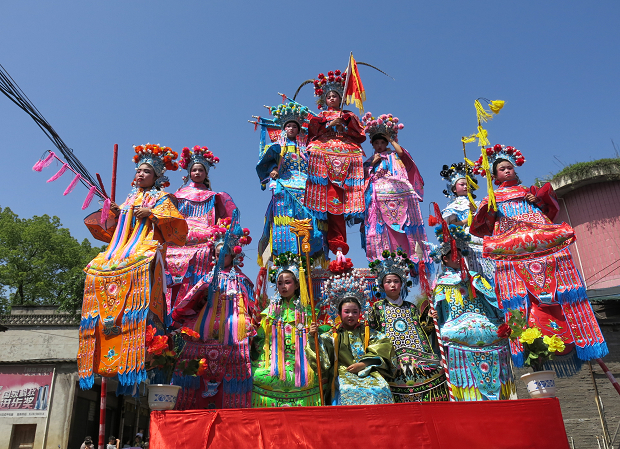 央廣網(wǎng)四川興文4月30日消息(記者隆敏 通訊員金萍 何德江 陸婷 )4月30日,“2014四川興文大壩高裝文化節(jié)”在興文大壩古鎮(zhèn)開幕。開幕式上,苗家歌舞、雜技川劇輪番登場(chǎng),有著近300年歷史的“大壩高裝”藝術(shù)巡游更是吸引了八方來(lái)客,爭(zhēng)相一睹國(guó)家級(jí)非物質(zhì)文化遺產(chǎn)風(fēng)采。