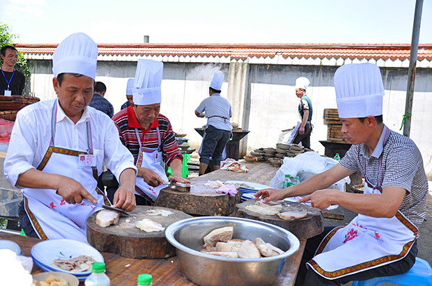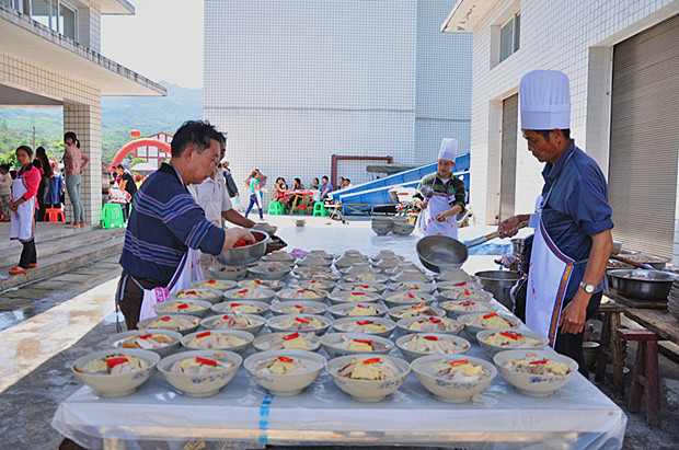 興文大壩古鎮(zhèn)是苗族聚居地,節(jié)日當(dāng)天,遠(yuǎn)近村寨的苗族同胞紛紛聚集到了這里,身著節(jié)日盛裝,跳著歡快的苗家舞蹈。古鎮(zhèn)街巷,沉浸在一片節(jié)日的喜慶氛圍中,好比過(guò)年。除了最具傳統(tǒng)特色的高裝巡游外,遠(yuǎn)道而來(lái)的游客還有幸品嘗了最具鄉(xiāng)土風(fēng)情的傳統(tǒng)宴席——苗鄉(xiāng)“水八碗”。