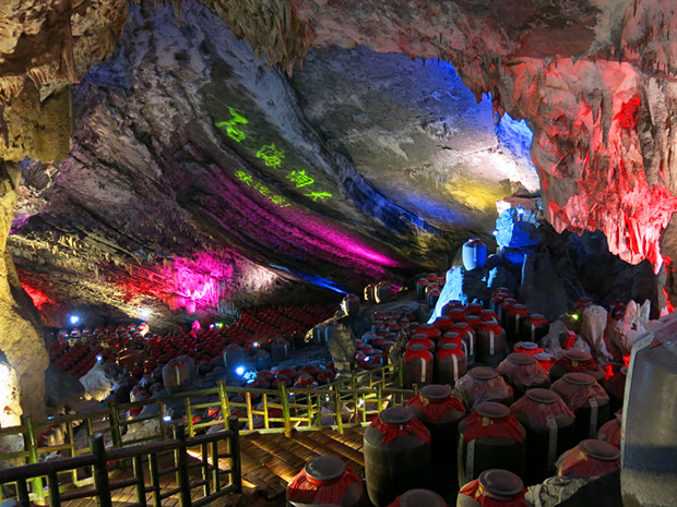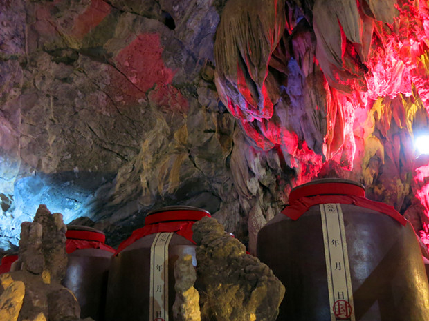 酒壇與溶洞里的石鐘乳交相輝映
