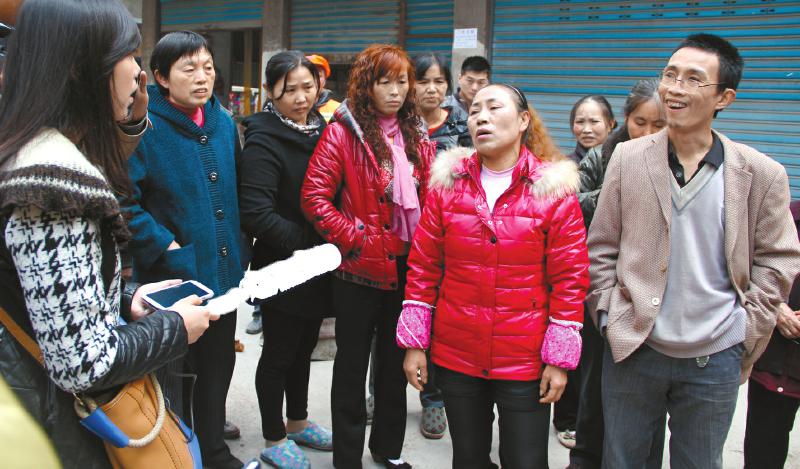 現(xiàn)場(chǎng)目擊者向記者介紹情況。