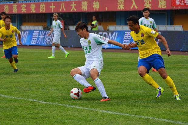 央廣網(wǎng)成都5月12日消息(記者隆敏 馬鮮)5月11日,2014賽季中甲聯(lián)賽第9輪最后一場比賽在都江堰市鳳凰體育場開戰(zhàn)。成都天誠在主場迎來此前未嘗勝績的廣東日之泉。急需取得一場勝利的廣東日之泉憑借葉偉超和余劍鋒上下半場的兩粒入球兩次領(lǐng)先,但無奈成都天誠同樣在上下半場利用王鍇和布里斯的兩粒入球兩度將比分扳平。這場保級圈的焦點(diǎn)之戰(zhàn),最終以2:2握手言和。