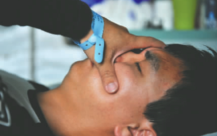 昨日下午,成都電視臺第二頻道記者羅娛躺在病床上,頭部淤青。經(jīng)診斷,羅娛左側顳頜關節(jié)面半脫位,顳骨關節(jié)面塌陷性骨折,這讓他的嘴難以完全張開。