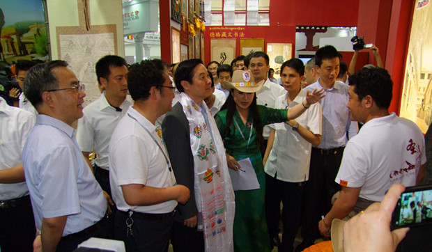 視察中,劉奇葆興致勃勃地觀看了甘孜州文化形象展示大屏幕和非物質(zhì)文化遺產(chǎn)、土特產(chǎn)品及民間工藝品。他來到藏文書法、藏族噶瑪嘎孜畫派、藏族藥泥面具制作技藝等非物質(zhì)文化遺產(chǎn)項目和土特產(chǎn)品展品前,仔細(xì)詢問這些藝術(shù)品的生產(chǎn)工藝、制作流程等情況后,對甘孜州深厚的文化底蘊和稟賦的旅游資源連連稱贊,殷切希望甘孜州要傳承好歷史文化,發(fā)揮好民間藝術(shù)非遺項目,走文化產(chǎn)業(yè)、旅游發(fā)展之路,做大做強,更好地讓當(dāng)群眾受益得實惠。
