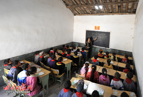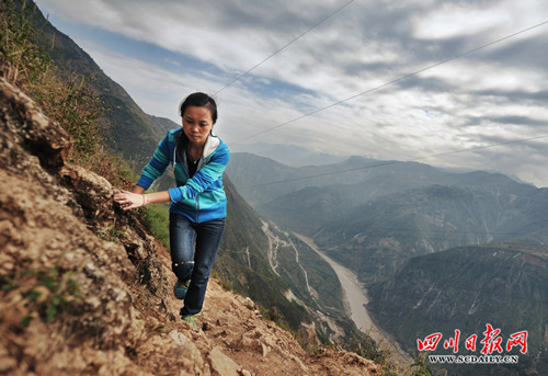 四川日報網(wǎng)消息(田為 攝影報道)一塊大石頭沿著坡度為70多度的山路滾了下去,馬劍霞校長發(fā)出“啊~啊~”的聲音,她說,鄉(xiāng)里的人都這樣做,為了提醒山下的人們有碎石滾落。