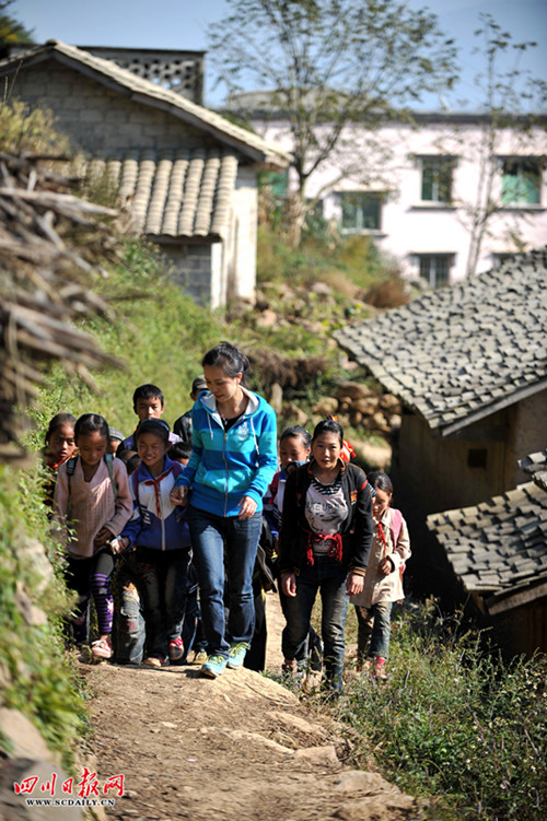 放學(xué)了,馬劍霞送部分學(xué)生回家
