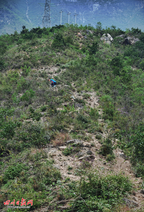 部分山路很是陡峭,走慣山路的馬劍霞有時也不得不手腳并用