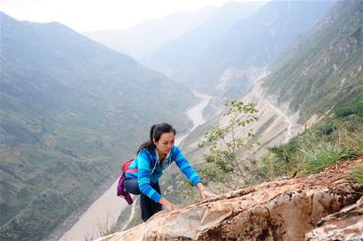 10月25日清晨,陽(yáng)光映照在金沙江兩岸的大山上。雷波縣唯一不通車的大坪子鄉(xiāng)海拔1600米大山的山路上,一名腦后跳躍著馬尾的女子,脫下外套綁在腰際,雙手攀住巖石,敏捷地跨上更高的山路。有人喊,她抬起頭來(lái)應(yīng)一聲:“回學(xué)校了!”遮擋陽(yáng)光的棒球帽檐,繡著醒目的英文“SUPER”。