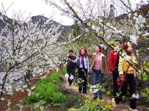 春風(fēng)村李花開(kāi)時(shí)游客多(資料圖)