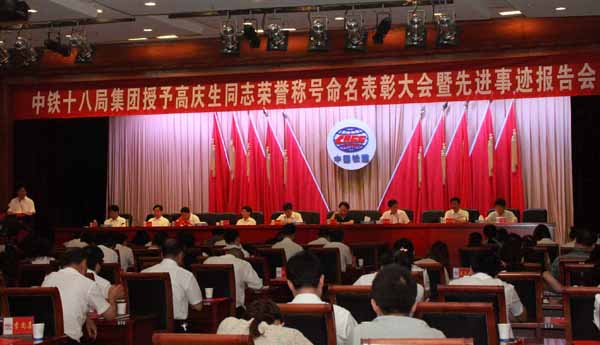 中國鐵建十八局集團(tuán)授予高慶生同志榮譽(yù)稱號命名表彰大會暨先進(jìn)事跡報告會會場