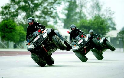 特警駕駛?cè)匦诬囘M行單邊駕駛表演。