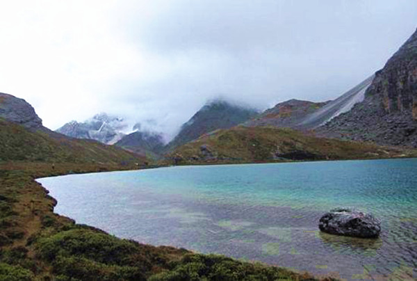 五色海由于會在光的折射下,產(chǎn)生五種不同顏色而得名。其藏名為“木底錯”、“單增措”。它位于仙乃日與央邁勇之間,海拔4600米,湖面呈圓形。面積0.7公頃,是藏區(qū)著名的圣湖(佛經(jīng)中贊譽該湖與西藏羊巴雍措齊名),據(jù)傳能能“返演歷史,預(yù)測未來”,有很多宗教上的傳說。