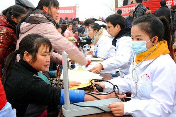 醫(yī)療服務隊為群眾現(xiàn)場體檢
