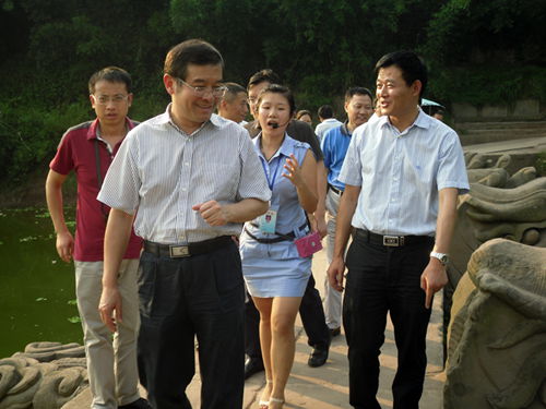 8月14日至15日,省旅游局郝康理局長(zhǎng)率隊(duì)調(diào)研瀘州重大旅游項(xiàng)目建設(shè)推進(jìn)情況,在瀘州市劉云副市長(zhǎng)等市縣領(lǐng)導(dǎo)的陪同下現(xiàn)場(chǎng)考察了瀘縣龍橋文化生態(tài)園、玉蟾山溫泉綜合開(kāi)發(fā)項(xiàng)目、瀘州張壩桂圓林旅游區(qū)建設(shè)項(xiàng)目,聽(tīng)取了瀘縣、江陽(yáng)區(qū)、古藺縣相關(guān)負(fù)責(zé)人對(duì)項(xiàng)目推進(jìn)情況的匯報(bào),對(duì)瀘州市縣兩級(jí)黨委政府重視旅游產(chǎn)業(yè)發(fā)展、旅游資源的豐富性、旅游產(chǎn)業(yè)發(fā)展的基礎(chǔ)狀況等給予了充分肯定,并對(duì)瀘州旅游產(chǎn)業(yè)發(fā)展提出指導(dǎo)意見(jiàn)。