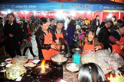 這位老板說,按照去年的情況預(yù)計,22日晚10時以后,羊肉湯生意將進(jìn)入最忙的階段!半S便上百桌,我們店不大,可能還要站著等。”