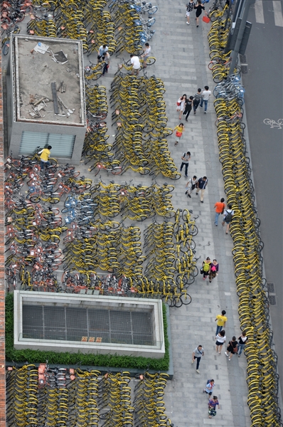 9月13日,地鐵市二醫(yī)院站E口附近,路邊擺滿了共享單車。