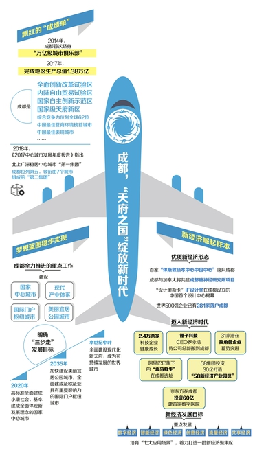 從享譽(yù)中外的“天府之國(guó)”,到人氣頗高的“網(wǎng)紅城市”,地處西部?jī)?nèi)陸的成都,近年來(lái)取得高速發(fā)展。2014年,成都首次躋身“萬(wàn)億級(jí)城市俱樂(lè)部”,去年完成地區(qū)生產(chǎn)總值1.38萬(wàn)億。