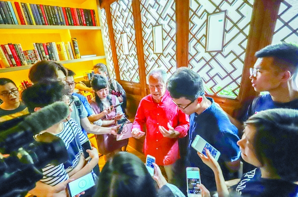 海內外媒體關注天府論壇,記者正在采訪嘉賓