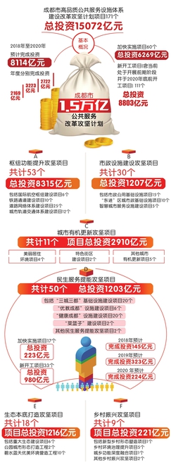 以“攻堅(jiān)”命名,足見決心之大。華西都市報(bào)-封面新聞?dòng)浾邚娜珪?huì)獲悉,攻堅(jiān)計(jì)劃共實(shí)施171個(gè)重大基礎(chǔ)設(shè)施和民生項(xiàng)目,總投資15072億元,其中,加快實(shí)施項(xiàng)目60個(gè)總投資6269億元,新開工項(xiàng)目111個(gè)總投資8803億元;預(yù)計(jì)2018年、2019年、2020年將分別完成投資2169億元、3223億元、2722億元。