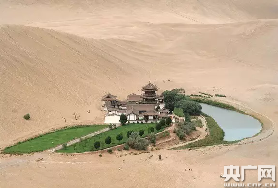 詩人方健榮兒時(shí)“差點(diǎn)掉進(jìn)去”的月牙泉,身處沙山,形如彎月,因“亙古沙不填泉,泉不涸竭”而成為奇觀!八拿骘L(fēng)沙飛野馬,一潭云影幻游龍”的吟詠?zhàn)専o數(shù)人心馳神往。如今,這灣碧水卻日益“消瘦”、“憔悴”了:“當(dāng)那首《月牙泉》回蕩耳畔時(shí),我們聽到的不是美,而是一種擔(dān)心,擔(dān)心有一天這只淚眼會枯萎,一朵絕世花朵一般,會從人間天堂里凋謝…”