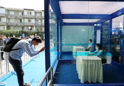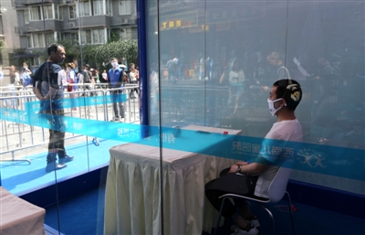 志愿者進(jìn)入封閉的玻璃房間體驗(yàn)