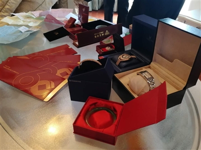 一個高約40厘米的保險箱,里面有20件貴重物品,有金鐲、鉆戒、手表等
