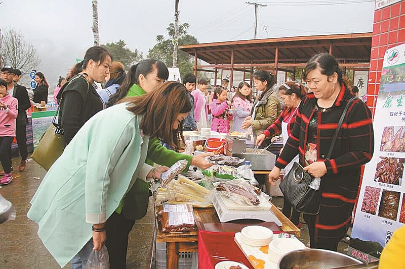 游客在首屆烏骨雞美食文化節(jié)上購買農(nóng)特產(chǎn)品。本報(bào)記者 何海洋 攝