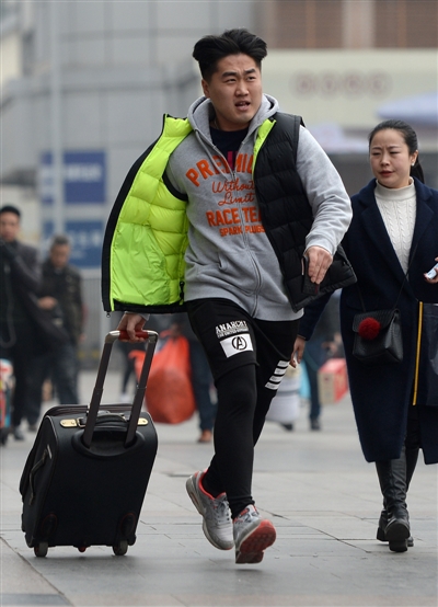 在火車北站,歸心似箭的心情寫在了旅客的臉上,過往的旅客行色匆匆,加快了回家的步伐。從售票大廳到候車大廳,旅客拖著行李,攥著車票奔走其間。無論行李有多重,鞋跟有多高,腳步有多稚嫩,都不能減慢旅客們奔跑的步伐。