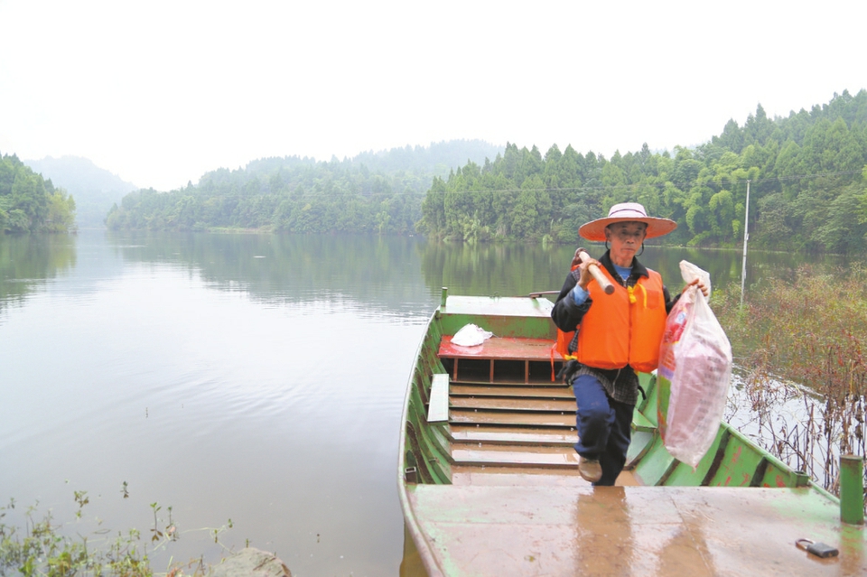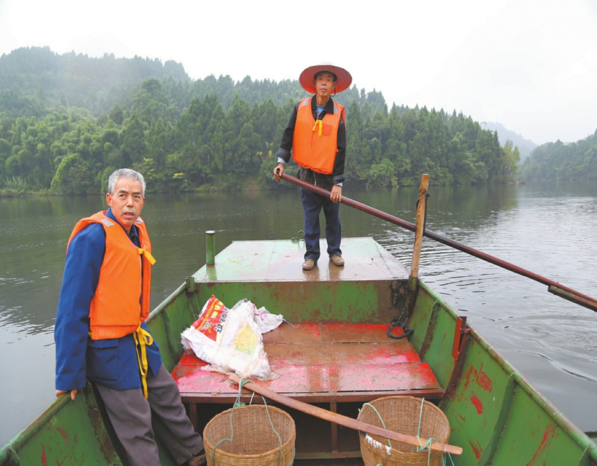 上世紀60年代末,當?shù)卣疄榱吮WC村民的生產(chǎn)生活用水,修建了蔡家灣村水庫。水有了保證,但當?shù)亟?00村民又遇到出行難的問題。為此,村社籌資建造了一條木質(zhì)渡船,請家庭貧困的熊國志作為擺渡人,并計算工分作為酬勞。