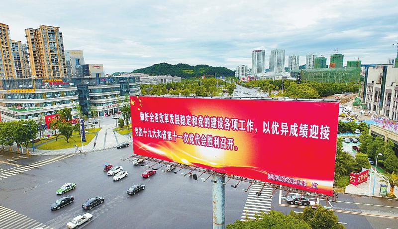 遂寧市在市區(qū)街頭設(shè)置了迎接省第十一次黨代會(huì)召開的巨幅標(biāo)語牌。