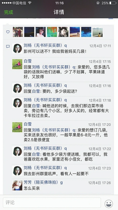 朋友圈里對購買蘋果反響熱烈。