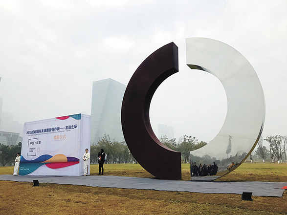 今年4月,成都邀請(qǐng)38位來(lái)自國(guó)際友城的雕塑家來(lái)蓉采風(fēng)。上周,經(jīng)過(guò)系列評(píng)審,適合盡快落地的24件雕塑小樣在天府綠道規(guī)劃展示中心亮相。其中,波蘭羅茲雕塑家亞洛斯瓦夫·伯雷克設(shè)計(jì)的“友誼之環(huán)”已被率先完成實(shí)物制作并安裝在桂溪生態(tài)公園東區(qū)。