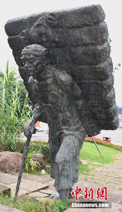 雅安茶馬古道上艱辛的背夫在拾茶。
