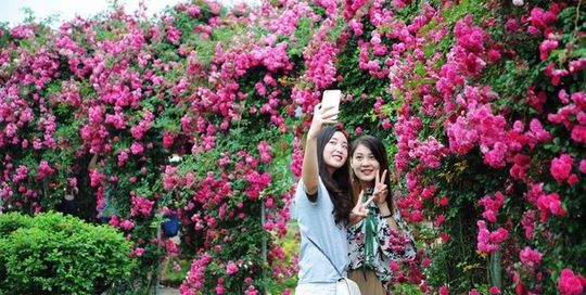 花舞人間景區(qū)內(nèi)已是繁花似錦的景象,漫山杜鵑花、百萬郁金香、繡球花、三角梅…花開成海,如云似霞,而且隨著氣溫的升高,目前景區(qū)內(nèi)的玫瑰花也將開始盛放,景區(qū)東西大門的玫瑰園又將成為情侶秀恩愛的自拍專區(qū)。