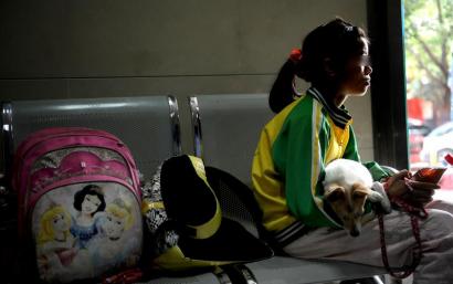 佳佳說,幾天前,她向母親辭行后,獨自一人帶著狗狗“仔仔”從老家德陽中江縣坐上了前來成都的大巴車,希望能找到居住在成都的孃孃借錢為母親治病,順便找些學費,“開學了,家里沒有湊夠錢。