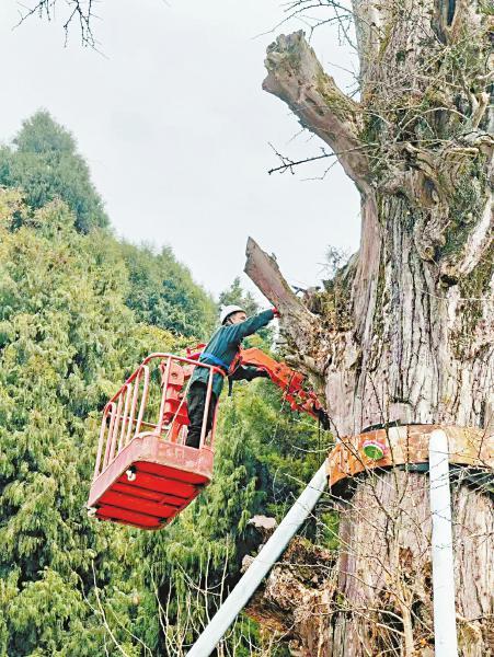 2026年初,技術(shù)人員為古銀杏“刮骨療傷”。成都東部新區(qū)黨群工作部供圖