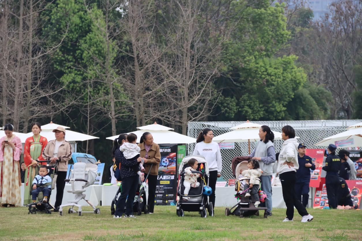市民在公園里“遛娃”(東坡區(qū)委宣傳部供圖)