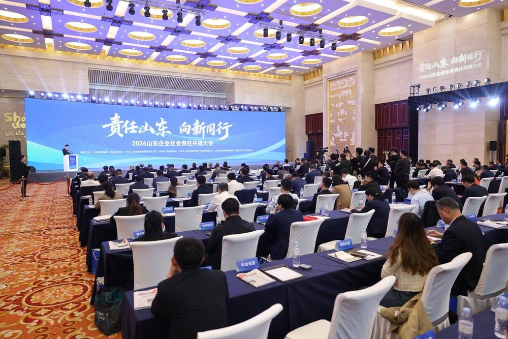 4月13日下午,以“責(zé)任山東 向新同行”為主題的2026山東企業(yè)社會(huì)責(zé)任共建大會(huì)在山東大廈金色大廳舉行。大會(huì)聚焦企業(yè)社會(huì)責(zé)任履行與ESG發(fā)展理念,匯聚政企學(xué)研媒多方智慧,為山東企業(yè)高質(zhì)量發(fā)展樹立標(biāo)準(zhǔn)、提供指引。