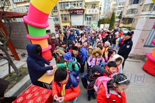 記者走訪煙臺(tái)市各中小學(xué)?吹剑M管是開(kāi)學(xué)首日,可一切都顯得非常有序,學(xué)生們都興奮地步入校園,而送孩子的家長(zhǎng)們也都很配合,將孩子送到學(xué)校后,紛紛有秩序地離開(kāi),學(xué)校門(mén)前的交通并沒(méi)有造成擁堵。各學(xué)校針對(duì)學(xué)生開(kāi)學(xué)第一天的“第一餐”的安排,也都很豐盛,讓學(xué)生吃的放心。