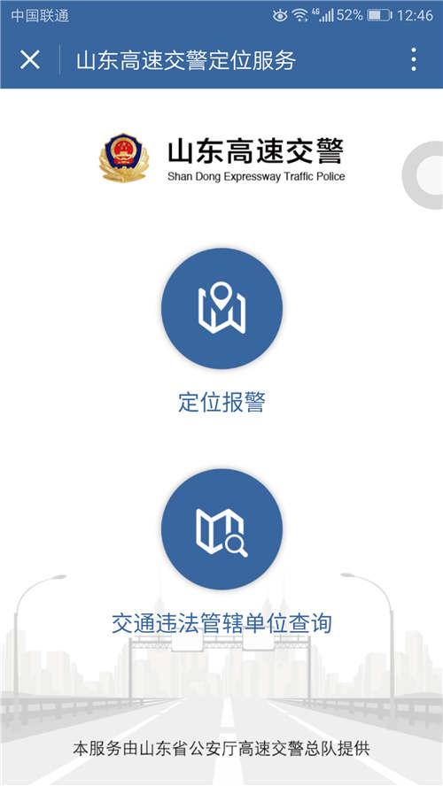 為了解決高速公路事故定位難的問題,國(guó)內(nèi)首個(gè)高速公路事故報(bào)警定位小程序“山東高速交警定位服務(wù)”正式上線。車主在微信小程序中搜索“山東高速交警定位服務(wù)”,直接點(diǎn)擊進(jìn)入,是否允許定位選擇允許,就能看到“定位報(bào)警”和“交通違法管轄單位查詢”兩個(gè)功能。