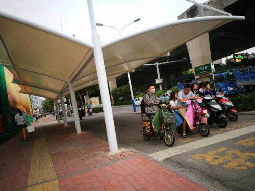 9月10日,濟(jì)南二環(huán)東路,近日新增的遮陽棚給等車候的騎車人提供了一個(gè)相對舒適的環(huán)境。美觀又輕便的遮陽棚最早出現(xiàn)在經(jīng)十路,正在逐漸向濟(jì)南各個(gè)地區(qū)擴(kuò)展。