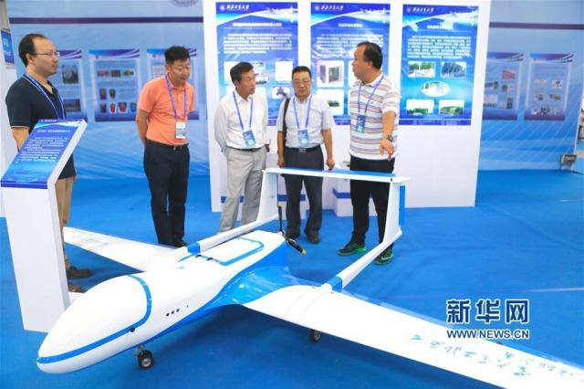 9月12日,觀眾在2017中國(青島)國際海洋科技展覽會上參觀西北工業(yè)大學(xué)研發(fā)的工業(yè)級固定翼無人機(jī)。當(dāng)日,2017中國(青島)國際海洋科技展覽會在山東青島國際博覽中心開幕。本屆展會為期三天,以“科技經(jīng)略海洋·創(chuàng)新實(shí)現(xiàn)夢想”為主題,展出面積3萬余平方米,共分為海洋科技新成果和新技術(shù)、海洋工程裝備和儀器設(shè)備、海洋服務(wù)和咨詢、海水綜合利用、海洋生物科技五大主題展區(qū),參展單位500余家!