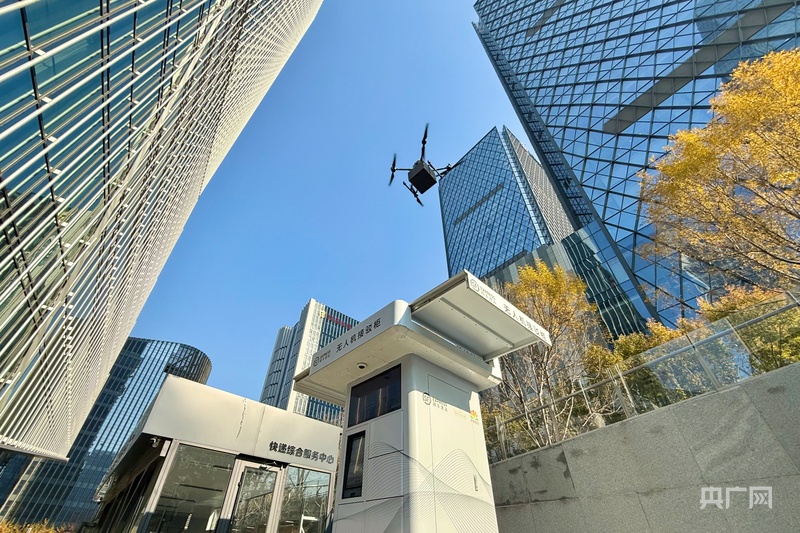 無人機將快遞配送至中央商務區(qū)(央廣網(wǎng)記者 李舜 攝)