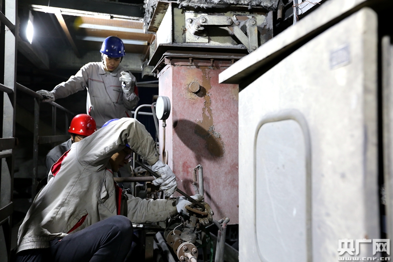 央廣網(wǎng)濟南11月7日消息(記者 唐磊)11月6日晚8點,記者再次來到濟南北郊熱電分公司,距離上次探訪已經(jīng)過去了近一個月的時間,不過與上次準備階段不同的是,當晚這里將要進行的是點爐環(huán)節(jié)。所謂點爐就是將供熱主管網(wǎng)的高溫水循環(huán)建立起來,從而對設備進行熱態(tài)的調(diào)試,確保正式供暖開始時的供熱質(zhì)量。這也意味著居民家里的暖氣即將熱乎起來。圖為點爐前,工作人員正在進行著緊張的準備工作。 -