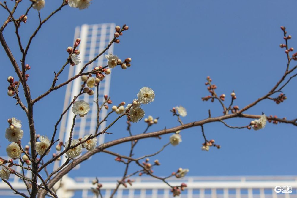 眼下,青島中山公園春意漸濃,園內(nèi)梅花悄然吐蕊,為乍暖還寒的早春增添了一抹亮色。